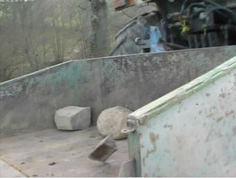 When the fields have been plowed, rocks emerge from the ground. The farmers pick them and throw them into a dumper truck. Then they use them as embankments.