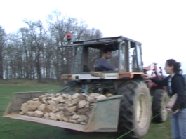 When the fields have been plowed, rocks emerge from the ground. The farmers pick them up and throw them into a dump-truck. Then they use them for building embankments. This work is repeated every year, as if rocks were growing afresh every season.
