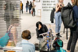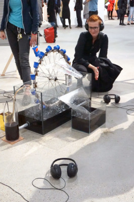 An actress imitates a synthesised voice and chants sentences from job advertisements.