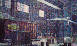 Série-f is a series of paintings made with extracted images from video games. A manual production is governed by a manufacturing process in four steps. Each painting consists of several units (rectangles). These units are painted as if each of them were a single abstract painting. The composition emerges slowly, raster by raster, like the work of a printhead. This labor of construction is made mechanically and automatically.